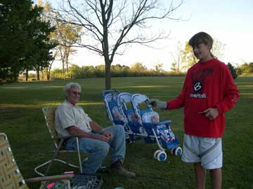 Shelby and Uncle Joel at the pond. The babies and I